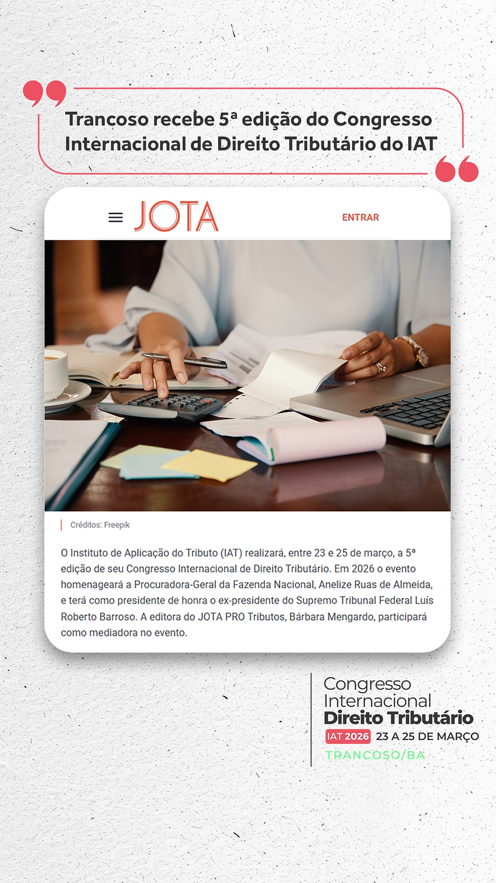 A 5ª edição do Congresso Internacional de Direito Tributário do IAT - 2026 já começa a ganhar destaque na mídia: inovação, conteúdo transformador e troca de ideias entre profissionais do setor público, da iniciativa privada e da academia.